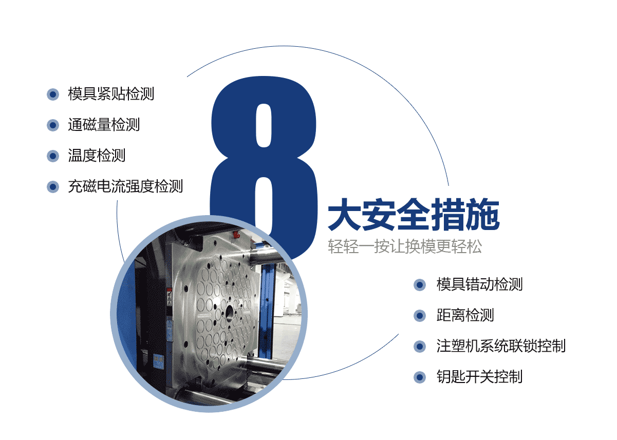 電永磁磁力模板適用于各種品牌的注塑機(jī),全新的圓形磁結(jié)構(gòu),特殊的內(nèi)部磁路設(shè)計(jì),較傳統(tǒng)的磁力模板增加20%。